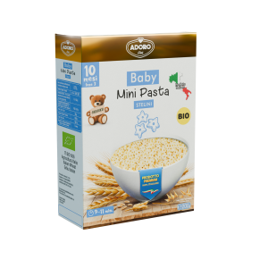 Pastele Adoro i Bimbi, în forme jucăușe și dimensiuni potrivite pentru bebeluși, sunt produse din ingrediente certificate ecologic – precum grâul dur de cea mai bună calitate – fără aditivi, conservanți sau coloranți artificiali. Fiecare produs este îmbogățit cu vitamine esențiale, precum vitamina B1, și conceput pentru a sprijini o diversificare sănătoasă și naturală.
